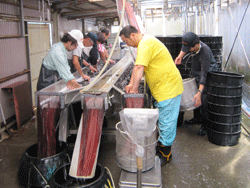 | ブランド鰻の最低必要条件は「ただ美味しいだけ」ではなく「いつでもある=継続性がある」ということが必要です。単発的に美味しい鰻があるのでは、蒲焼店の方々も仕入れる鰻の品質差から鰻料理の味に誤差が出てしまうのよくないことですし、お店にいらっしゃるお客様に対しても大変失礼に当たります。 私たちは共水うなぎを御使用のうなぎ屋さん達と毎日のようにコミュニケーションを図り、美味しさの追求である品質研究とともに、お店の使用状況にあった育成にも努力しております。その為、共水うなぎに興味を抱かれたお店に対しては充分な相互理解を得た上でお取引を開始しております。必要に応じては当社よりお店に出向くだけではなく、当養鰻場での取り組みや姿勢を見て頂きたく養鰻場にお越しいただくよう依頼いたします。 更に鮮度の維持と流通に透明感を持たせる為、活鰻問屋さん等を一切介入させず、養鰻場より毎日宅配しております。ここ数年の生産量は稚魚(シラスウナギ)不漁に伴い、80トンと少なく、残念ながら新規の申し出にお断りする場合がございます。 |